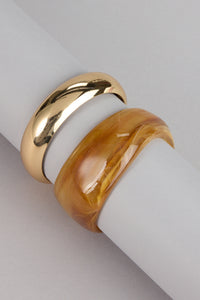 A chic collision of glossy acrylic and gleaming gold makes this cuff the easiest way to elevate your wrist stack. Clean, modern, and a little unexpected—it’s the kind of piece that pulls your whole look together without saying a word.