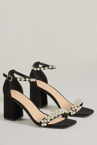 Luxe Style Pearl And Rhinestone Detail Block Heels