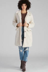 'Tis the season to bundle up and stay cozy! This long faux sherpa coat features a collared neckline, long sleeves, a button-down front, and a relaxed and comfortable fit. Layer this adorable coat over your fave sweater dress and complete the look with knee-high boots.