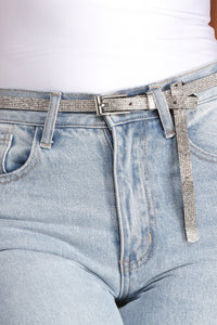 Channel glam with a rhinestone belt. For those occasions when you're feeling a little extra, throw on a narrow belt that features a rhinestone embellishment and a small square buckle. The belt is composed of faux leather material. Pair this glitzy belt with high waist jeans.