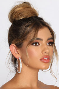 Create a soft glam look with a pair of stunning rhinestone hoop earrings, bound to dress up that cute messy bun of yours!