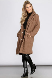 Keep warm and toasty this season with a cozy teddy trench coat!