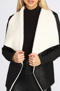 We are having a vision of you on a winter vacay, at the cabin, sippin' hot cocoa, and keeping it cute and cozy in the snow with a toasty sherpa suede coat!