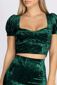 This holiday season, we're all lovers of velvet! This crop top is perfect for all your parties! Pair it with the matching mini skirt for a chic look.