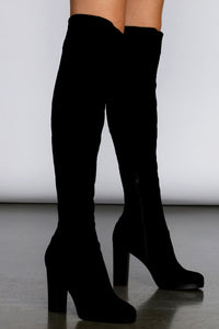 We got fall on our mind! These thigh high boots are designed with a round toe, a high heel, and a lace up detail at the top. Boots have a zipper closure and are composed of faux suede. Pair with your fav cozy sweater and beanie for a full on look!Style Number/Barcode: 07402-0086