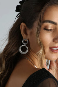 Give off a pretty glam aura with this stunning pair of rhinestone crawler earrings. They feature a long curved shape with round rhinestone embellishments and dainty rhinestone flower designs. Include a post-back closure. Style with a leaf-shaped rhinestone necklace.