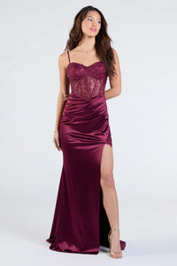 Bring the sultry heat to the night in the Olga satin mermaid formal dress for a gorgeous evening out look! From the lace corset bodice to the high front slit, you'll receive all the compliments.