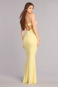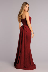 The Alaina strapless glitter knit mermaid dress is all about sleek drama, showcasing a smooth, luminous finish that feels effortlessly elevated. A striking open back with O-ring detail adds just the right touch of glamour for moments that call for unforgettable entrance energy.