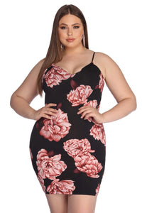 Fascinate and charm in gorgeous florals! This midi dress features a sleeveless bodice, a plunging V neckline, narrow adjustable strap and a pretty pink floral print throughout! Dress is composed of a slightly sheer smooth knit fabric that offers a bodycon curve hugging fit with a moderate stretch.