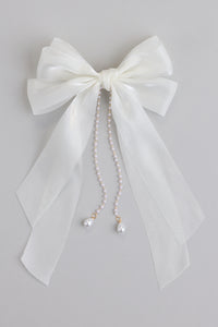 Dress up your tresses with this hair bow featuring delicate faux pearl chains.