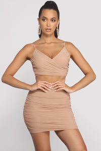 Serve up that wow factor in this top that stuns! Perfect for a night out with the squad, this top features a plunging surplice neckline, a cropped hem and a ruched detailing throughout. Complete your look with the matching skirt and a pair of clear heels!