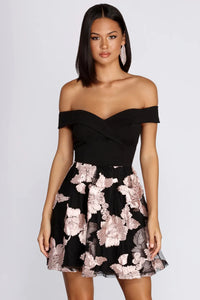 Feel fine and look flawless in this fresh mini dress! Pretty blooms cover this figure-hugging silhouette from top to bottom. Complement your look with soft curls and a pair of hoop earrings!