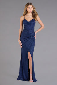 Johanna Cowl Neck Slit Glitter Formal Dress