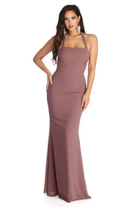 Special OccasionMake an entrance they'll never forget in our enchanting Tessa dress! She features a mauve hue, a halter neck strap, a sweetheart padded bust, a back zipper and hook and eye closure, and an elongating floor length silhouette. Dress is composed of a lined chiffon fabric that offers a curve hugging fit.