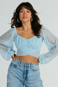 All This Grace Tie-Back Mesh Crop Top All This Grace Tie-Back Mesh Crop TopLook and feel so graceful in this tie-back mesh crop top perfect for day dates or brunch! Made from a sheer mesh fabric with texture, this top boasts romantic peasant long sleeves, a V-neckline, and a flirty cropped hem with tie-back straps. Complete the look in a midi skirt and sandals! Fit & Features - Sheer mesh fabric with texture