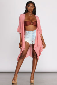 Chill out and relax in a summer ready kimono! Whether you are wearing over swim, or you style with a cropped top and high waist shorts you are 100% ready to get some sun and look