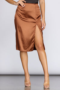 Chic Satin High Slit Midi Skirt