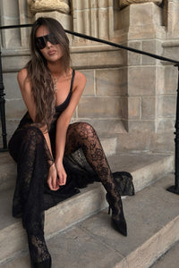 Barely there, but unforgettable. This sheer lace slip dress brings full soft seduction with its body-skimming silhouette and thigh-high slit. Perfect for layering under or over your favorite looks.