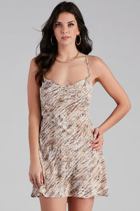 Make a ruffle at the party in this chiffon babydoll dress featuring a sleeveless V-neckline, adjustable spaghetti straps, criss-cross back, flowy silhouette, and a ruffled trim throughout. Composed of a chiffon woven fabric with an inner skirt lining. Perfect for styling with a mini tote bag.