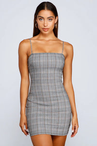 Oh-so-chic, this plaid mini dress is a staple you can take into the fall season! It features a trendy square neckline, spaghetti straps, and a short, curve-hugging silhouette. Style this knit dress with clear heels and a faux leather jacket.