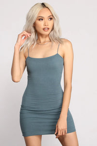 Keep your look basic and chic in this ribbed mini dress you can totally dress up or down! It features a mini length silhouette and a form-hugging fit to enhance your curves. Elevate your outfit by pairing this adorable dress with chunky sneakers for a more casual vibe.