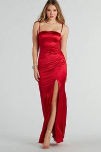Hallie Rhinestone Satin High Slit Mermaid Dress