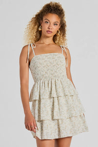 Get swept away into a world of romance in this floral skater dress perfect for a shower or date! The square neckline and tie-shoulder spaghetti straps add a touch of sweetness, while the stretchy smocked bodice ensures a comfortable fit. The skater silhouette and tiered ruffled hem make this dress perfect for twirling the night away. Complete the look with earrings.