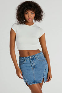 Hey, shorty looking cute in these high-rise denim shorts! Perfect for any spring or summer plans, these shorts fit just the way you want and flatter from every angle. The high-rise waist and form-hugging fit hug your figure, while the distressed accents and cut-off hem add a touch of edgy style. Complete the look in a flirty crop top.