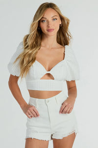 Spring Breeze Sweetheart Tie Eyelet Crop Top