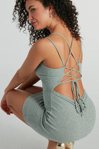 Flawless Behavior Lace-Up Glitter Party Dress