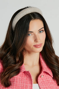 Bring the posh vibes to your fave 'fits with this adorable rhinestone and pearl headband! It features an on-trend puffy wide flexible design embellished with mini gold rhinestones and mini faux pearls in a chic continuous diagonal pattern. Style with a woven blazer and a fitted mini skirt for a dressy weekend brunch!