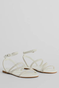Sparkling crystal rhinestones and faux pearl embellishments add a stunning artistry to these flat sandals perfect for brides or any dressy event! Featuring a round toe and strappy design, with an adjustable ankle strap for the perfect fit. The lightly cushioned footbed and flat sole provide all-day comfort to these faux leather sandals. Complete the look with a hair accessory for a chic finish!