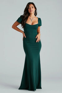Feel glamorous and stylish in the Marcie formal crepe dress to make a lasting impression at banquets or fancy soirees! She features a square neckline, short puff sleeves, and a curve-hugging mermaid silhouette that drapes elegantly to the floor-length hem. This dress is crafted with a crepe knit fabric with plenty of stretch so you can move comfortably. Complete the look with faux pearl earrings and a clutch.