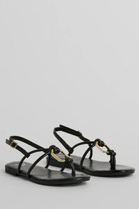 These chic flat sandals make styling for spring to summer effortless! they feature a sleek almond toe, a metal charm trim detail, a strappy design, and an adjustable ankle strap with buckle closure. Complete the look with a chic tote bag.