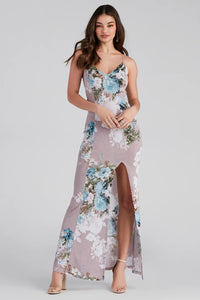 Showcase your beauty as the best-dressed wedding guest in this blooming floral knit maxi dress! Designed with a gorgeous floral print design, it features a sleeveless V-neckline, spaghetti straps that lead to a bold open back with a lace-up strappy design, a thigh-high front slit to show off your heels, and a slim-fit silhouette. Complete your look with sleek hoop earrings.