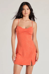 Shining Star Cowl Neck A-Line Glitter Mini Dress