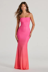 Emmalyn Ombre Mesh Lace-Up Mermaid Dress