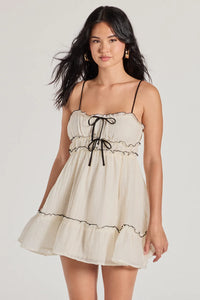 You'll look like cute perfection in this sleeveless skater dress at soirees! With adjustable spaghetti straps, a flattering scoop neckline, and three adorable bows with ruffle trim, this skater dress will have you feeling confident and stylish in its short-length hem. Complete the look in trendy sandals and a hair accessory.