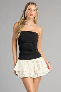 Sweet meets spicy in this ruched tube dress with a tiered ruffle skirt—basically, your flirty girl era into fall!