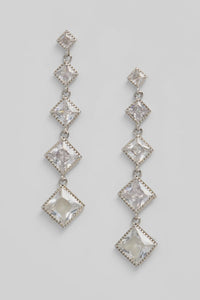 These elegant duster earrings feature a cascading linear design with five diamond-shaped rhinestone embellishments. Styles perfectly with a dainty tennis bracelet.