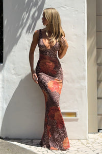 Serving fierce meets floral—this mesh maxi dress is pure goddess energy. Perfect for a sunset dinner on vacay or a chic cocktail bar.