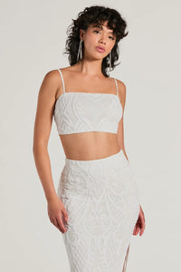 Let your sparkling personality shine in this sequin sleeveless crop top boasting a sleeveless square neckline, adjustable spaghetti straps, and a cropped hem with a form-hugging fit. Perfect for celebrations, complete the look with the matching midi skirt.