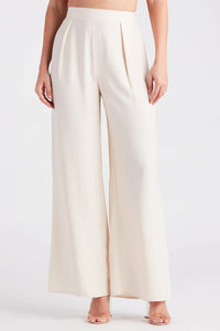 Sleek and sophisticated, these satin wide-leg pants will stylishly elevate your look. They feature a high-rise waist, front pleating, a wide-leg silhouette, and a relaxed fit. The satin woven fabric has minimal stretch. Pair with a basic bodysuit and strappy mules.
