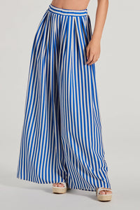 Weekend activities just got a little cuter in these striped palazzo pants perfect for vacations or going to a summer fair! The high-rise elasticized waistband and pleating create a comfortable and flattering fit, while the wide-leg flowy silhouette and striped print bring a stylish touch. Complete the look with the matching top