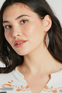 These delicate rhinestone drop earrings exude luxe vibes! They feature a chic diamond-shaped drop design accented with mini rhinestone embellishments for the prettiest sparkle. Include a fish hook closure. Style with a dainty tennis bracelet.
