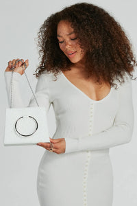 Showcase elite glamour at your next fancy affair with this faux pearl mini tote handbag! The faux leather exterior features all-over faux pearl embellishments for that trendy touch of sophistication. The mini tote has a square-shaped design with sleek metal O-ring handles and an included chain-link shoulder strap for effortless wear. The bag features a magnetic button closure to secure your essentials in the spacious woven interior. Style with the matching platform block heels for a chic seamless look!