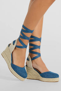 Beachy Dreams Denim Lace-Up Espadrille Wedges