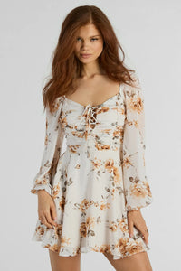 Gorgeous Mood Lace Up Floral Chiffon Skater Dress
