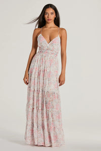 Exceptional Bliss Lace-Up Floral Chiffon Maxi Dress