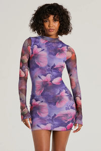 Stun And Only Mock Neck Floral Mesh Mini Dress